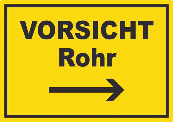 Vorsicht Rohr mit Richtungspfeil rechts Aufkleber
