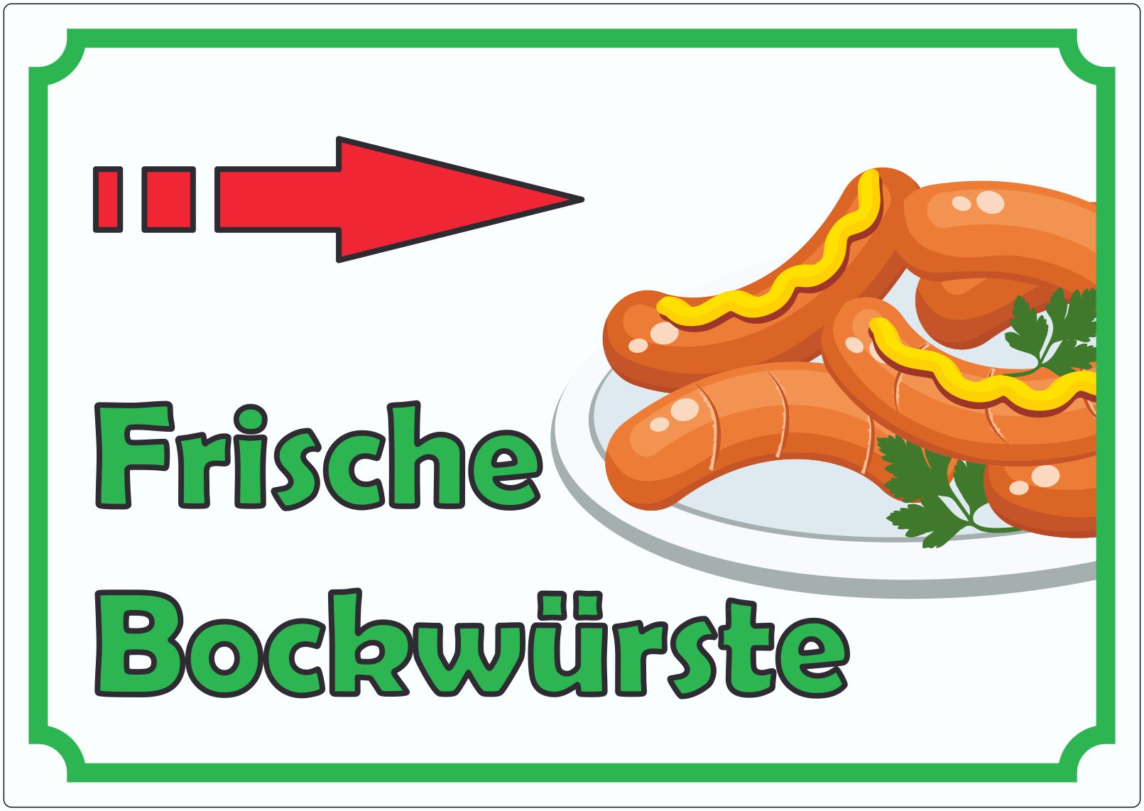 Frische Bockwürste Werbeaufkleber Aufkleber mit Pfeil nach rechts