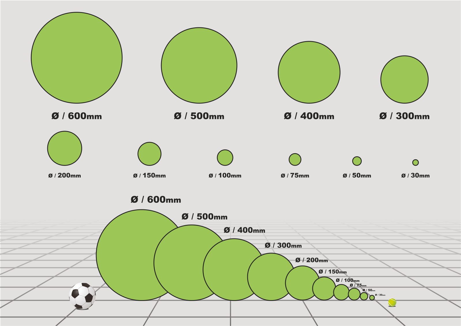 Die Aufkleber sind in folgenden Größen erhältlich: