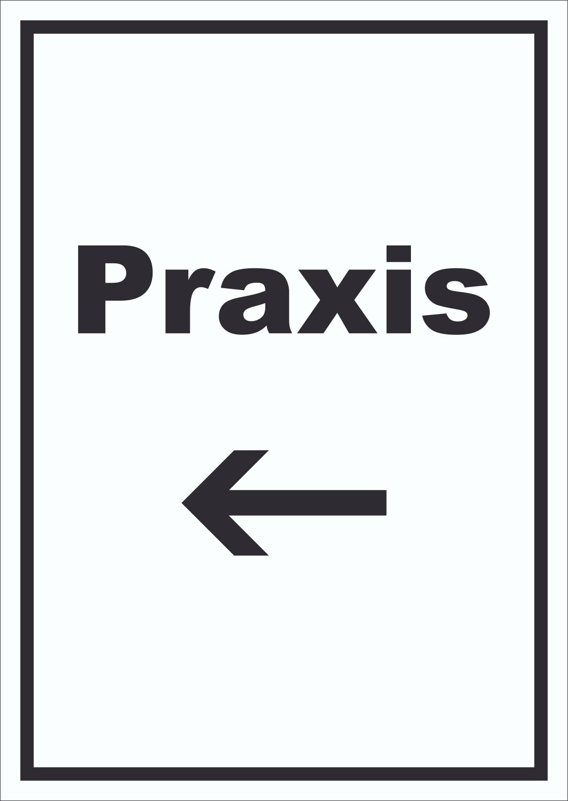 Produktinformationen "Praxis Schild mit Text und Richtungspfeil links Arzt Gesundheit hochkant"