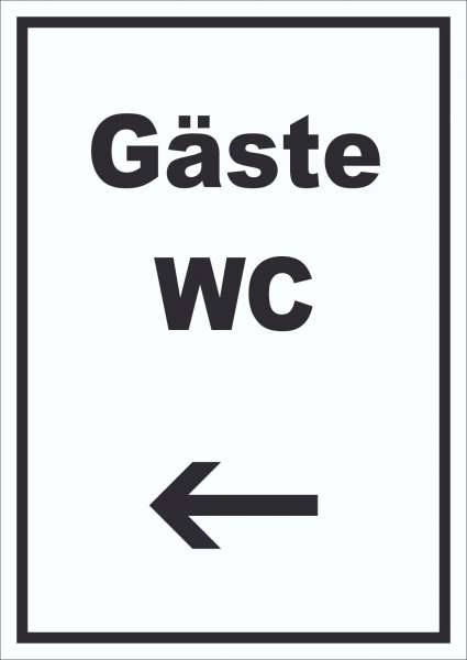 Weiterführende Links zu "Gäste WC Schild mit Text und Richtungspfeil links Toilette hochkant"