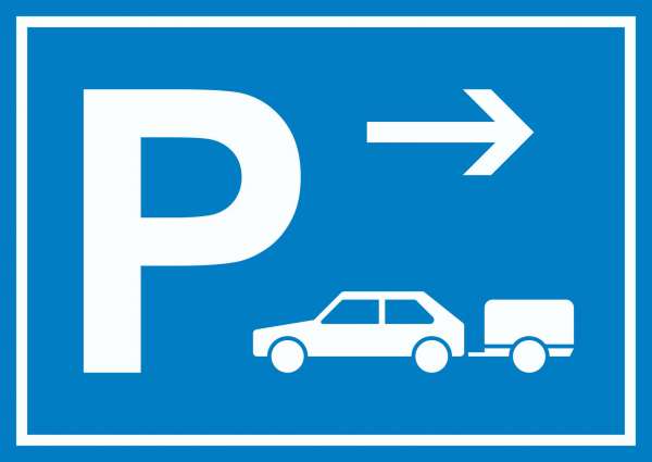 Weiterführende Links zu "PKW mit Anhänger Parkplatz Schild mit Richtungspfeil rechts waagerecht"
