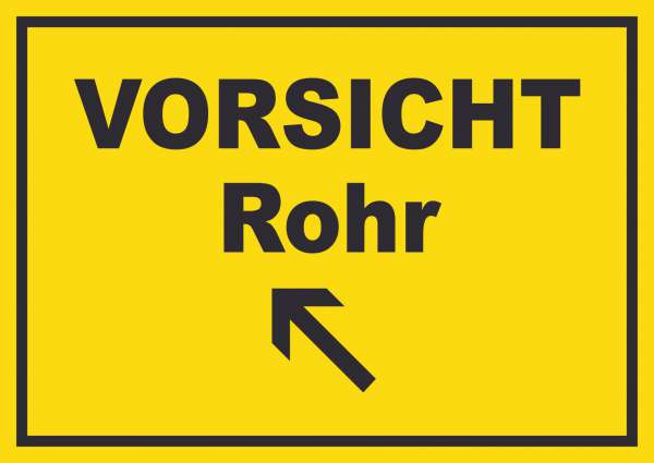 Vorsicht Rohr mit Richtungspfeil links oben Schild
